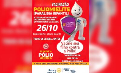 Distrito Federal4 horas atrásRotary e GDF lançam campanha de vacinação contra a poliomielite neste domingo no Eixão do Lazer.