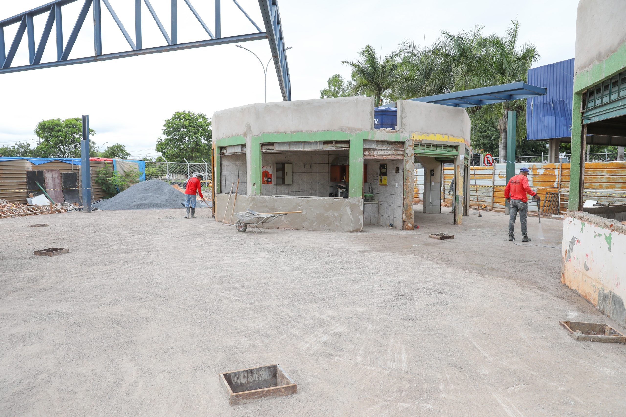 A cobertura antiga foi totalmente removida, e a parte hidráulica já foi concluída. As fachadas dos quiosques de alimentação estão sendo revitalizadas e recebem pintura geral, como parte do acabamento final.