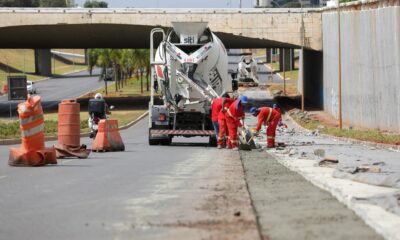 A pavimentação em concreto da faixa exclusiva para ônibus da W3 Sul está na fase final com a aplicação de pavimento rígido no último trecho previsto...