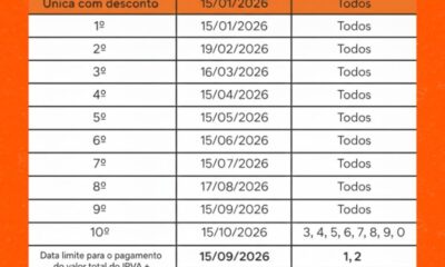 Goiás e Entorno10 horas atrásPrimeira parcela do IPVA 2026 vence nesta quinta-feira