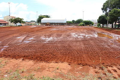 Máquinas trabalham na construção do campo de futebol sintético de Taguatinga