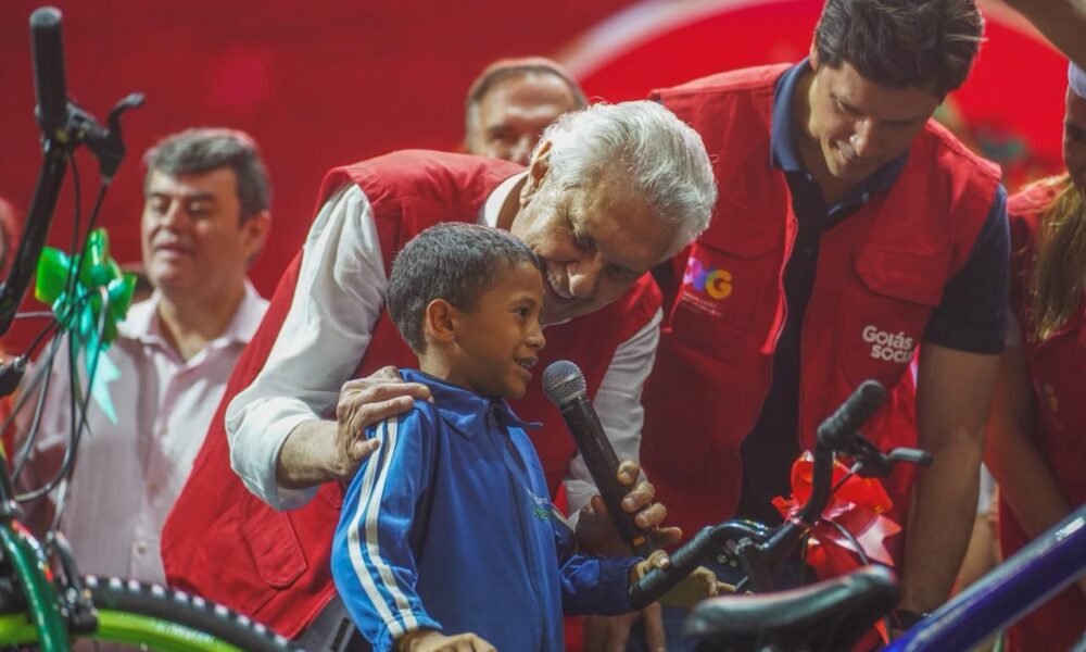 Victor Emanuel da Silva Gomes, 13 anos, morador do bairro Capuava, em Goiânia, ganhou uma das bicicletas sorteadas (Foto: Hegon Correa e Adalberto Ruchelle) A manhã...